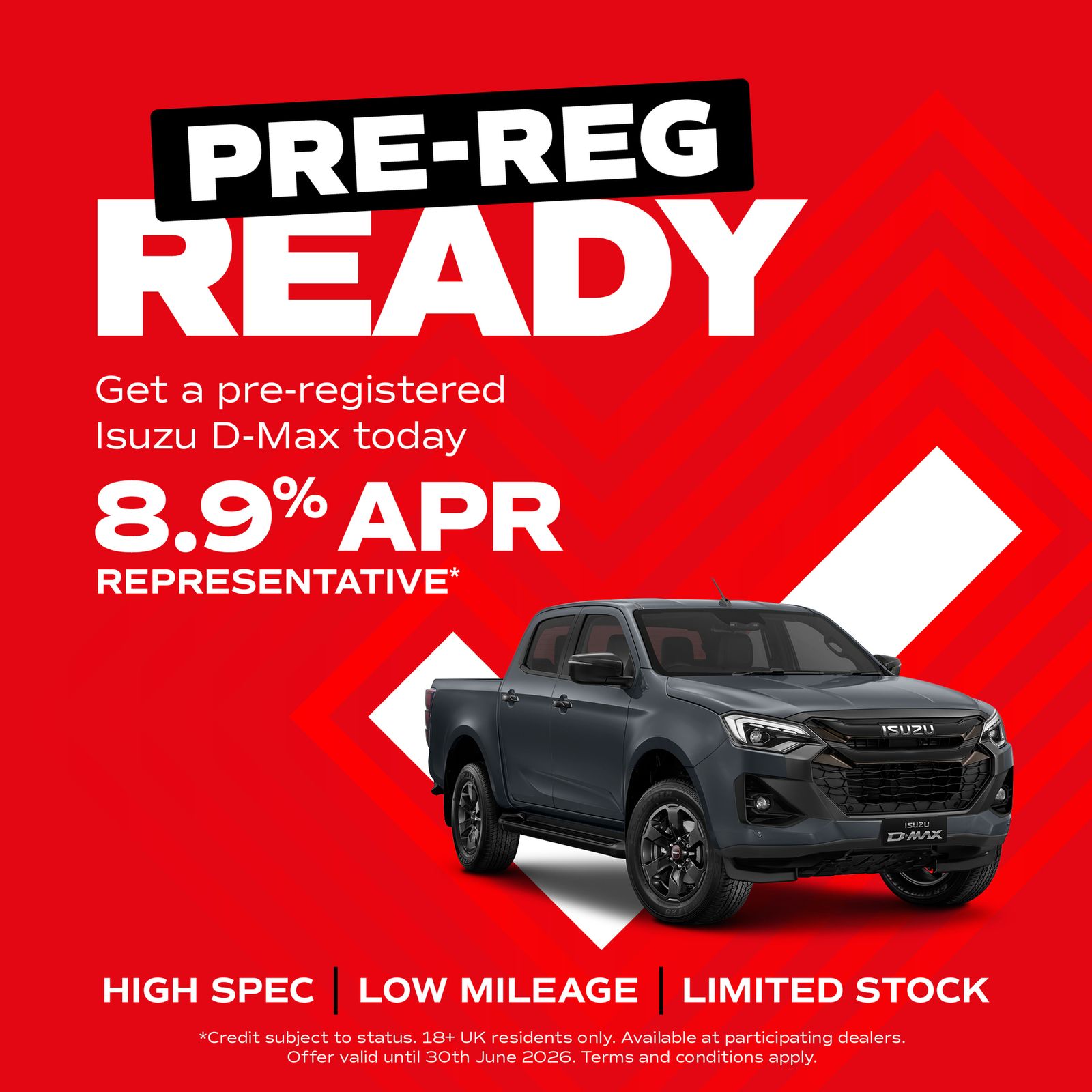 PRE-REG ISUZU D-MAX — READY TO DRIVE TODAY FROM JUST 8.9% APR
