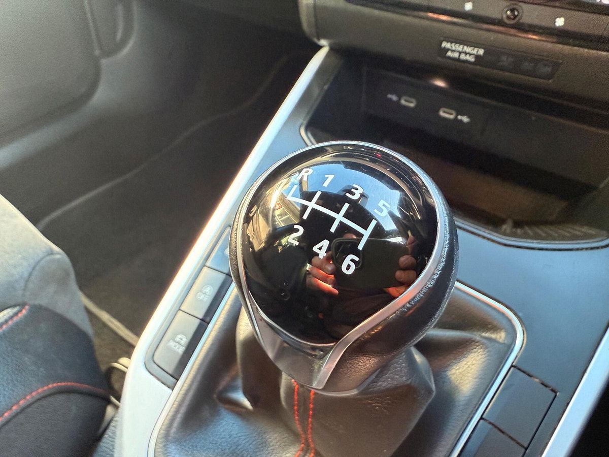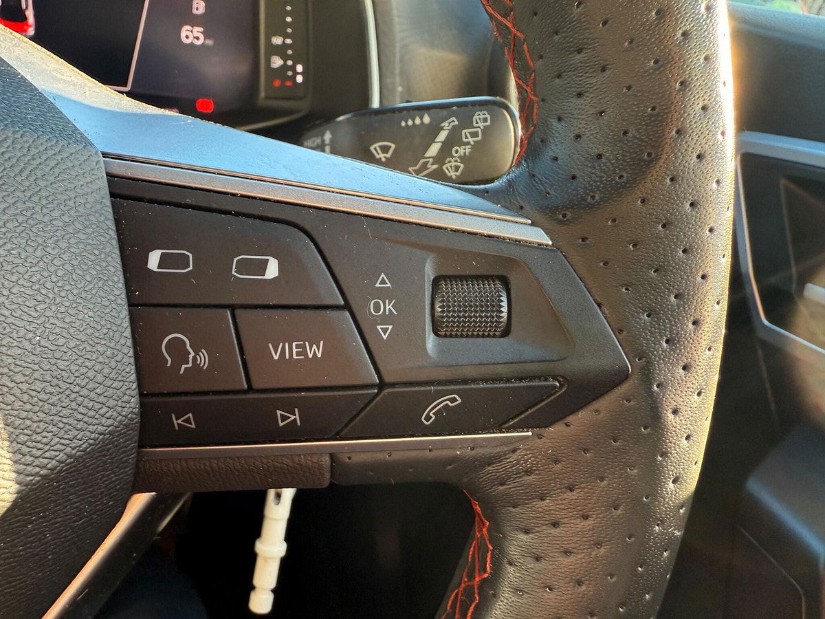 - Perforated Leather Flat-Bottomed Steering Wheel with Red Stitching and FR Logo with Leather Gear Knob and Handbrake